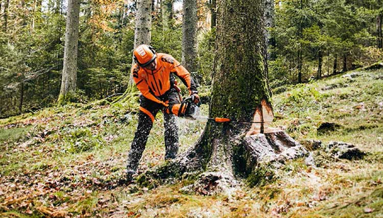 Sägen, spalten und bearbeiten mit zuverlässiger Forsttechnik zur Miete.