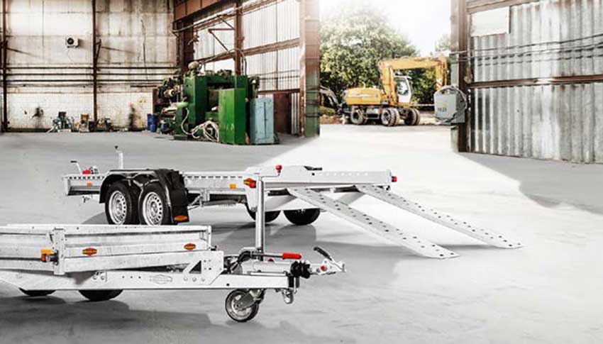 Anhänger, Rampen und Lösungen zum sicheren Transport von Geräten und Material.